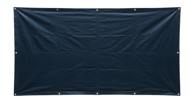 A large, dark blue fabric banner displayed flat against a neutral background, ideal for events or promotional use