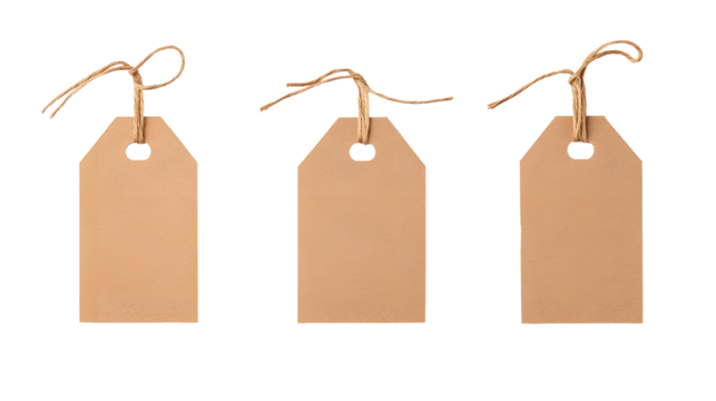 Set of light brown cardboard hangtags on a transparent background. isolated background.