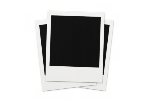 Blank instant print frames with empty black space for text or image, creating a template for memories, transparent background