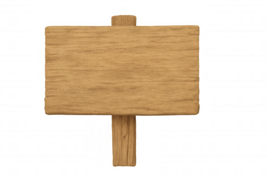 Blank wooden signpost offering an empty space for directions, information, or customizable message with transparent background