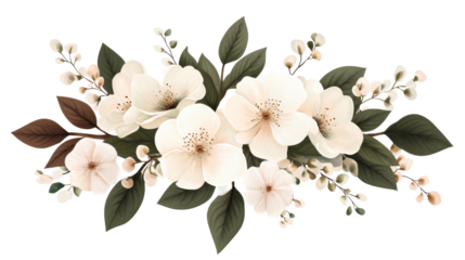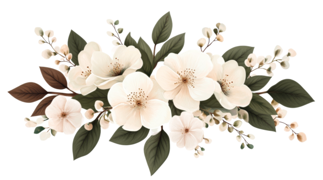 Set of colorful isolated decorative flowers arrangement, cut out transparent
