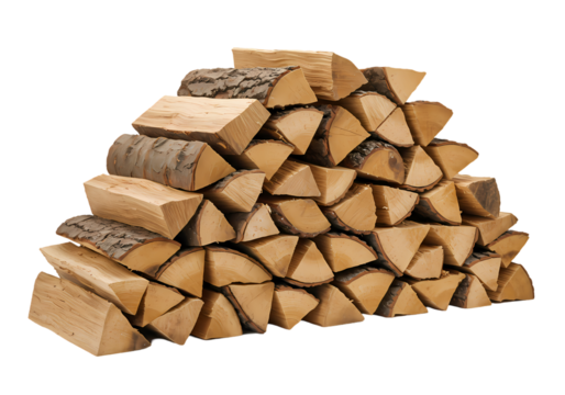 Set of isolated wood bark and tree log, brown timber trunk with wooden chips or flinders, stump or stub, textured stock of hardwood material. Firewood and crust, oak lumber and woodpile. Nature theme