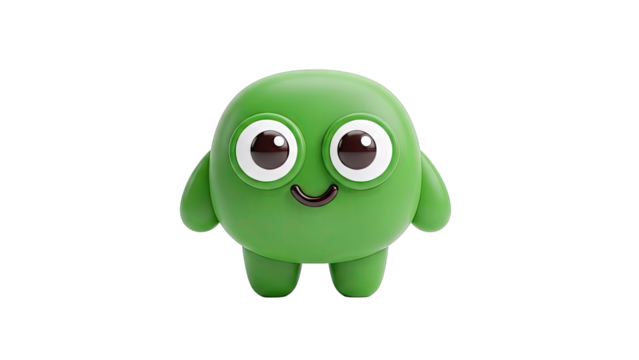 3D Cute Green Blob Character with Big Eyes and Smile on transparent background