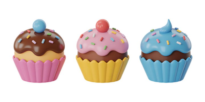 Colorful Cupcakes with Decorative Frosting and Sprinkles – Celebration Dessert PNG