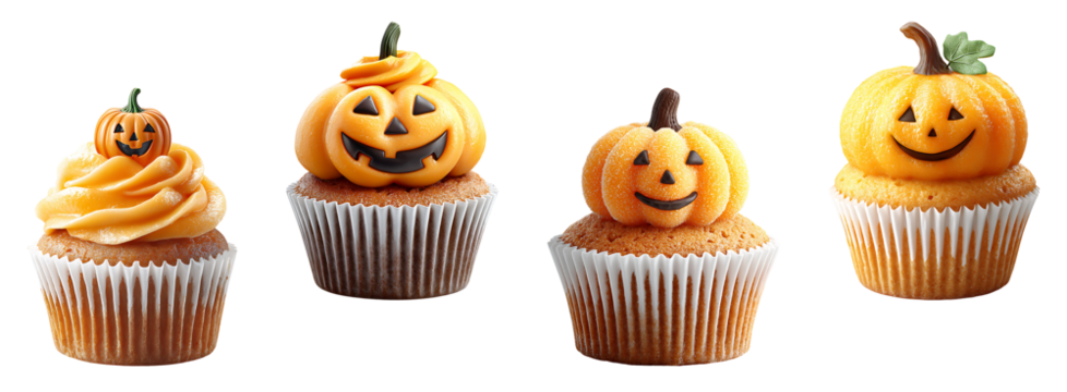 Halloween cupcake with pumpkin decoration isolated on transparent background.