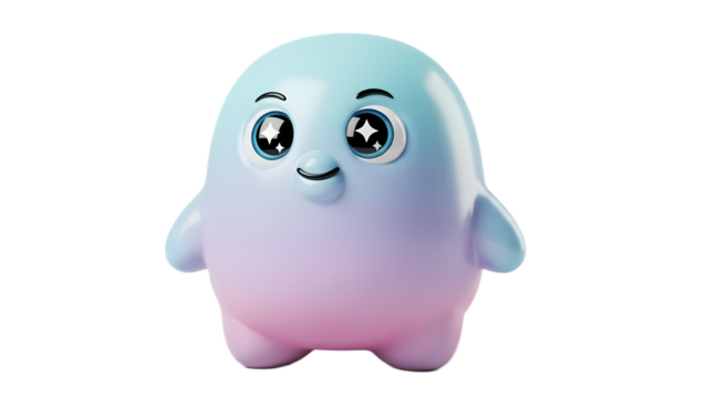 Vibrant pink smiling face icon with starry glow on transparent canvas