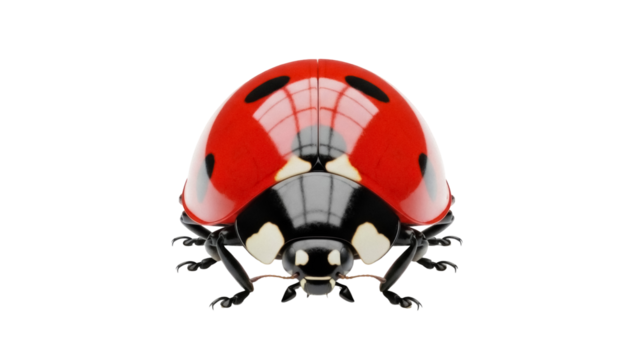 Red ladybug PNG isolated on transparent background, close-up of a cute insect with black spots for nature and design projects