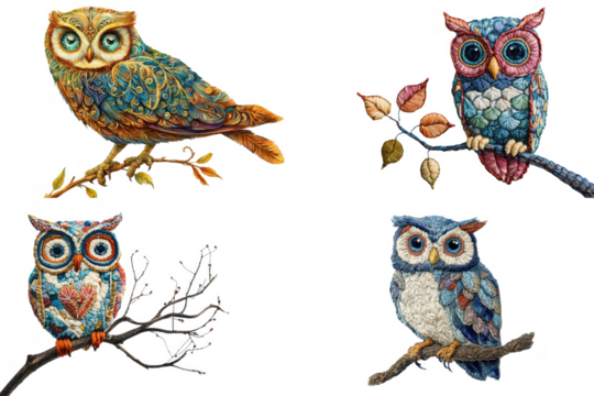 Artistic owl illustrations nature digital artwork creative environment close-up view whimsical designs for owl lovers