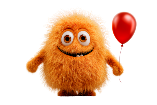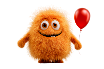 Funny Fluffy Orange Monster Holding Balloon