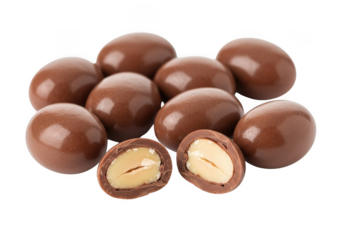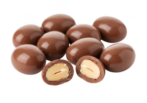 Pile of chocolate covered peanuts isolated on transparent background