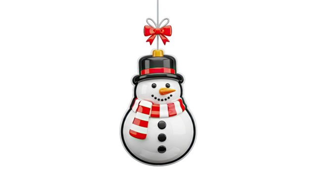 Festive snowman icon with top hat and red scarf on transparent background