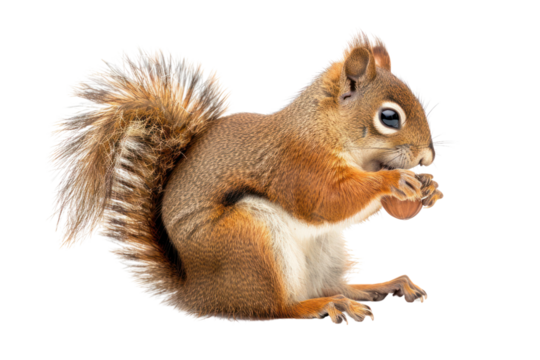 Squirrel rodent animal nut acorn hoard brown fluffy woodland silly expression isolated transparency background cute mammal autumn forest wildlife bushy tail small whisker alert nature wild snack