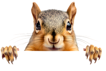 Cute squirrel holds a blank white banner in its tiny paws while showcasing an adorable expression, perfect for creative messages and announcements