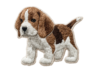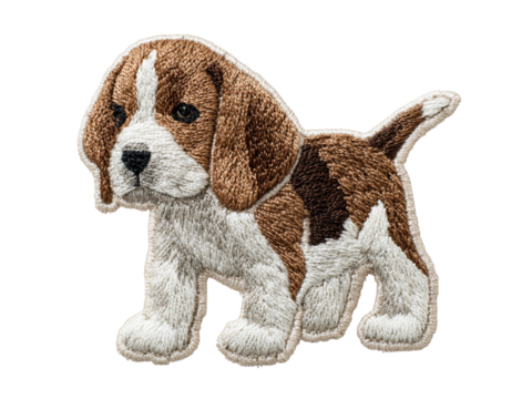Adorable embroidered beagle puppy patch on black background