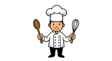 Cartoon Chef Holding Spoon and Whisk