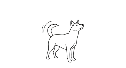 White outline of a dog with wagging tail on black background canine animal