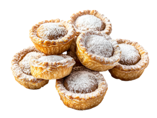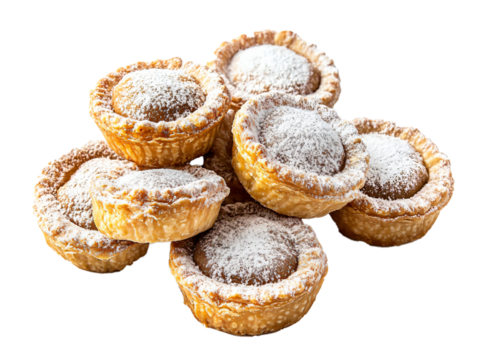 Mini Mince Pies with Powdered Sugar Dusting, Isolated on White Background