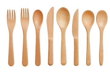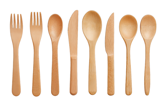 wooden cutlery eco set isolated on white background plastic alternative