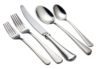 Transparent png cutlery set: fork, spoon, knife for kitchen design