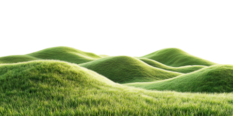 Green grass covering rolling hills on transparent background