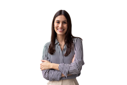 Smiling woman with heart cutout on transparent background