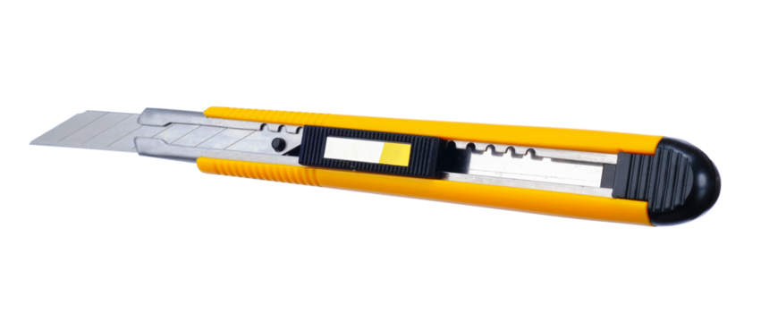 a stationery knife with a retractable blade, a cutting tool, isolated on a white background