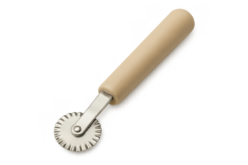 Stainless steel pizza cutter kitchen tool isolated on a transparent background