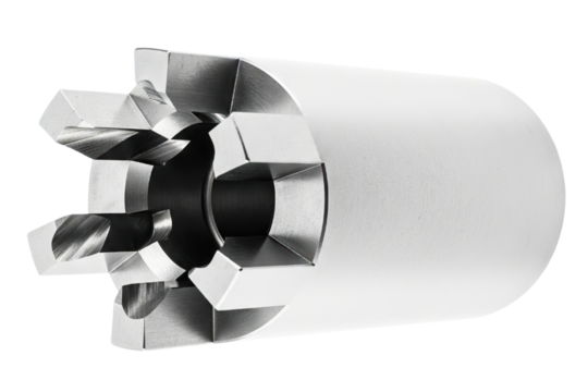 Industrial steel annular cutter drill bit for metalworking machinery isolated with transparent background