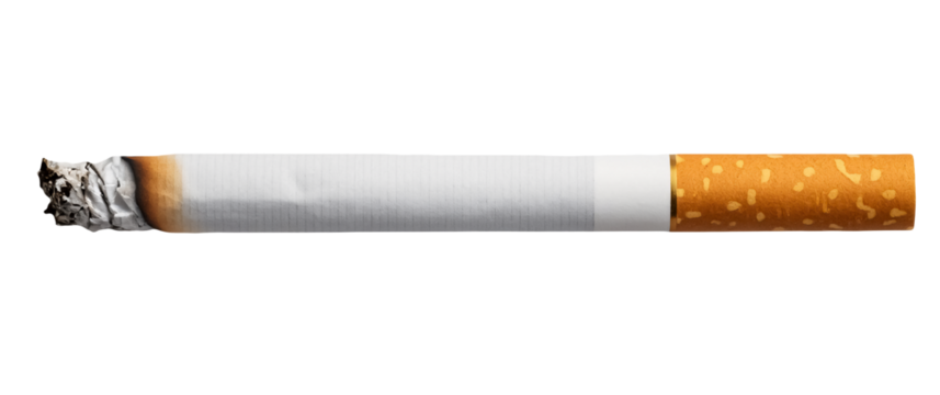 Black ceramic ashtray filled with cigarette butts, cut out - stock png.