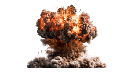 Intense Fireball Explosion with Smoke and Debris Bursting Outward, cut out transparent
