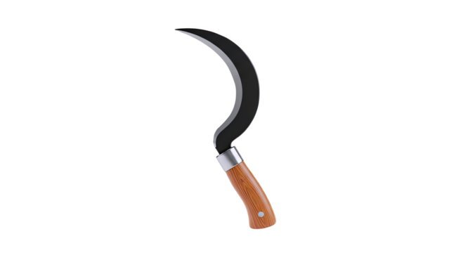Curved pruning saw with wooden handle for gardening, cut out, stock png, isolated on transparent background