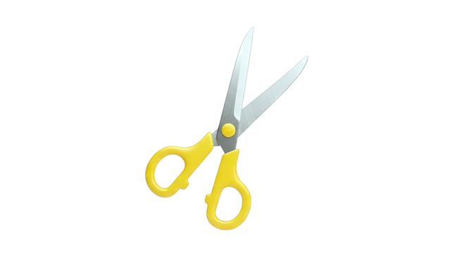 Yellow-handled scissors with silver blades, isolated on white background