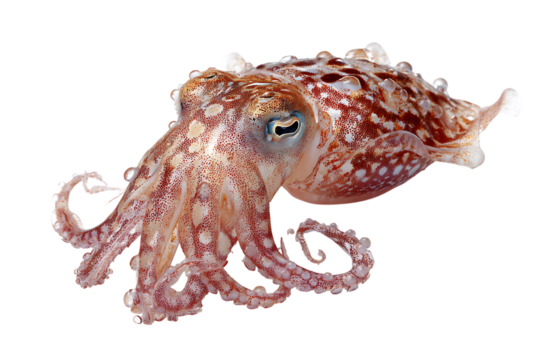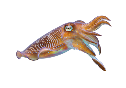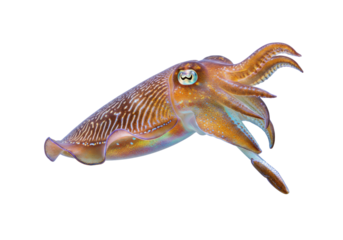 Close-up image of a vibrant and colorful cuttlefish against a transparent background