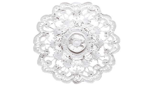 Elegant White Lace Doily Round Design Pattern art net mesh isolated on transparent background