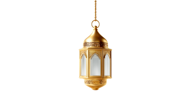Ornate Golden Hanging Lantern with Intricate Cutwork Details, cut out transparent