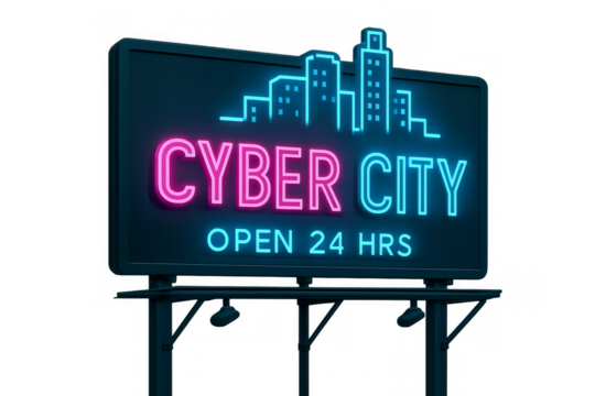 Neon Cyber City Encounter Futuristic Action Scene in Urban Nightscape on Transparent Background