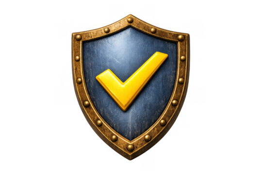 Digital shields with security symbols on transparent background