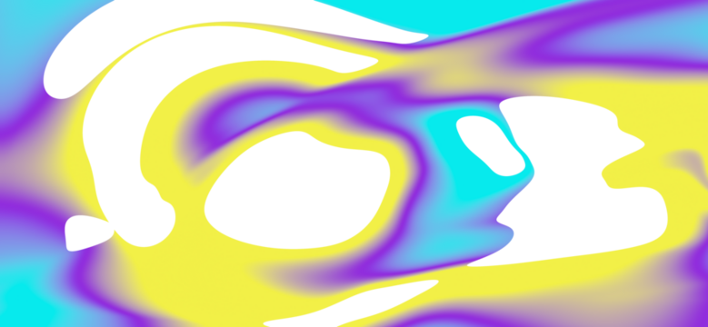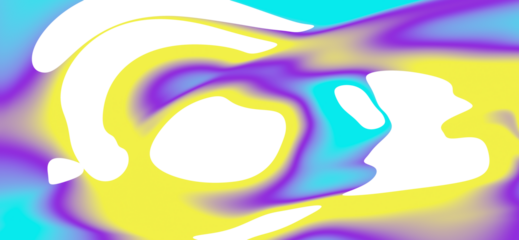 Abstract. Fluid. Liquid. An isolated PNG clip art on a transparent background of a colorful purple, yellow, and cyan liquid mesh gradient flow for modern banners or social media graphics.