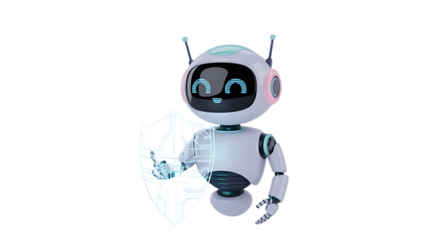 Laptop displaying a shield with a padlock representing digital security online safety on transparent background