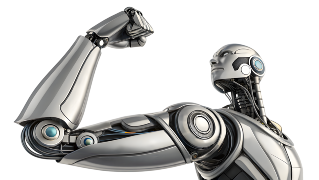 Robotic arm illustration with raised fist on transparent background