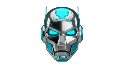 Futuristic Robot Mask with Blue Lights and Metallic Surface for Technology and Gaming Themes