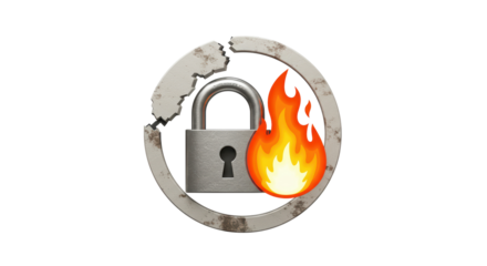 Isolated Padlock with Flame and Damage Icon