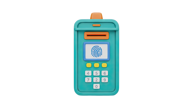 Isolated hand interacting with phone, screen displays a secure application interface icon.
