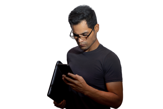 Cybersecurity Analyst Investigating Potential Data Breach isolated on transparent background
