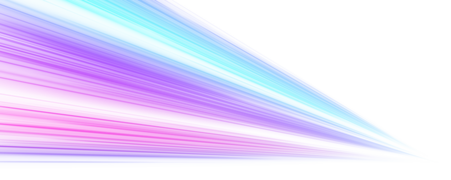 Transparent neon speed line with flowing light trails. Glowing curls and ribbons visualize acceleration and fast digital motion. Futuristic urban illustration isolated in png.