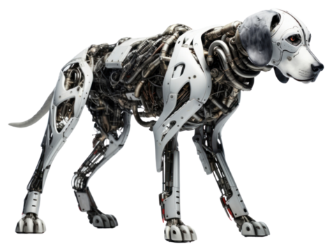 A humanoid robot with a sleek, futuristic design and glowing blue eyes, isolated on transparent background
