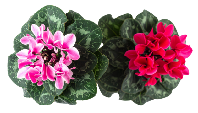 Elegant Pink Cyclamen Flower Pair in Full Bloom, isolated on transparent background