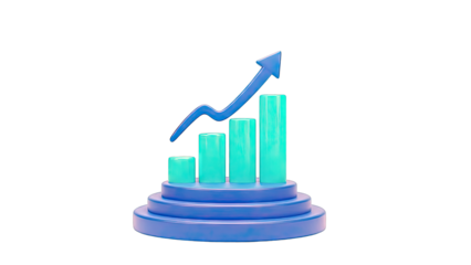 3D Bar Chart with Upward Trend Arrow