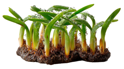 Green shoots emerging: New green shoots, fresh from the earth, showcase the promise of growth, resilience, and the cyclical nature of life, reflecting freshness, renewal.