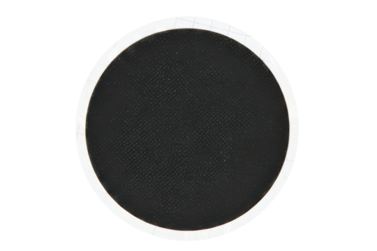 Circular black rubber patch for repairing punctured inner tubes isolated on a transparent background